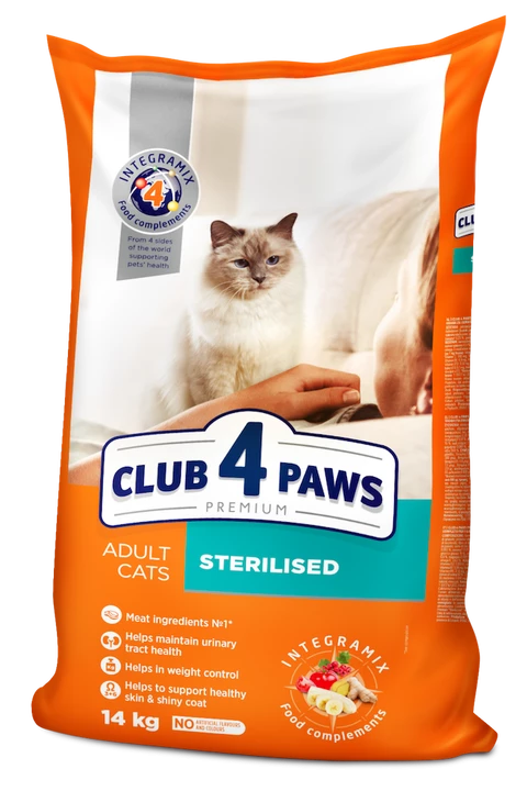До складу сухого корму Клуб 4 Лапи Стерилайзд входить: