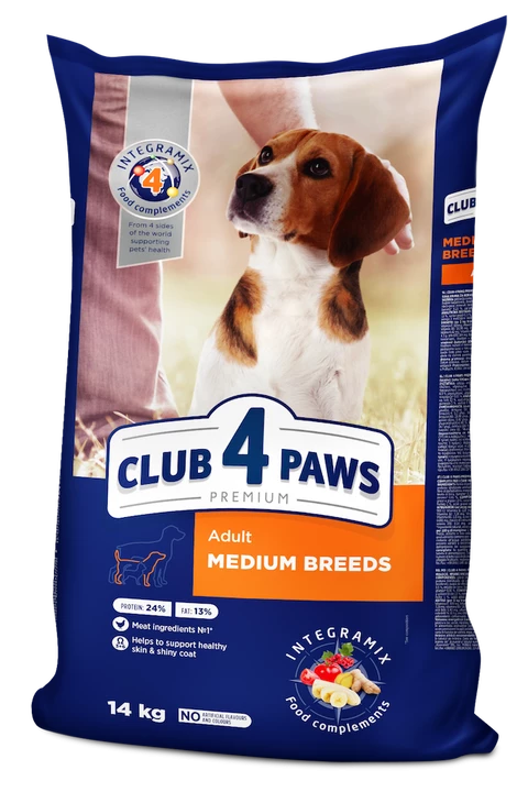 Особливості корму Club 4 Paws Медіум для собак середніх порід: