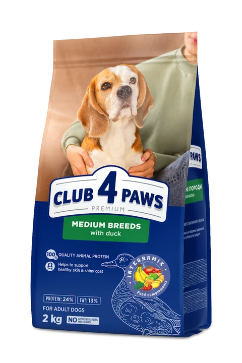 Сухий корм Клуб 4 Лапи Едалт Медіум з качкою для собак збагачений корисними мікронутрієнтами: