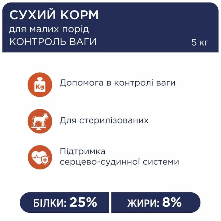Склад сухого корму Клуб 4 Лапи для дрібних собак схильних до ожиріння, включає багато важливих мікронутрієнтів. Основні компоненти формули: