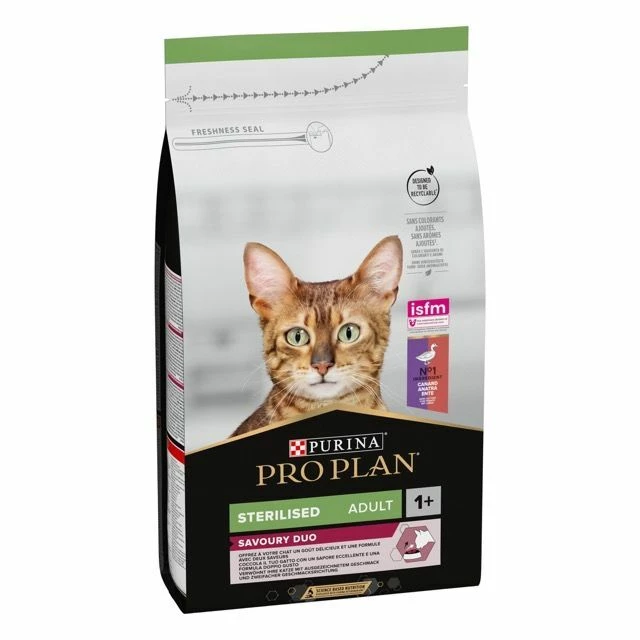 Сухий раціон супер-преміум класу містить відразу два добірні джерела протеїнів і відрізняється максимальною концентрацією білка - 42% від маси крокет. Проплан для дорослих котів після стерилізації з качкою та печінкою підтримує нормальний об'єм м'язів вихованця та забезпечує організм незамінними амінокислотами для правильного перебігу всіх метаболічних процесів. Щоб контролювати вагу тварини, необхідно дотримуватись рекомендованих порцій згідно таблиці годування.