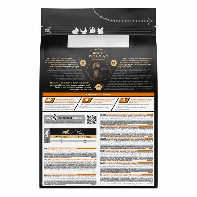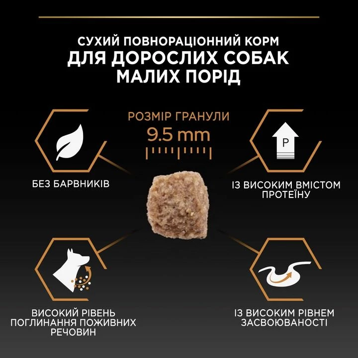 Сухий раціон розроблений з урахуванням потреб мініатюрних улюбленців, допомагає підтримувати їхню активність і хороше здоров'я. Пуріна Про План Едалт Смол Міні з куркою містить протеїни з хорошим показником засвоюваності - основний компонент харчування для собаки. До того ж крокети мають високу енергетичну цінність, яка необхідна для швидкого обміну речовин у вихованців дрібних порід.