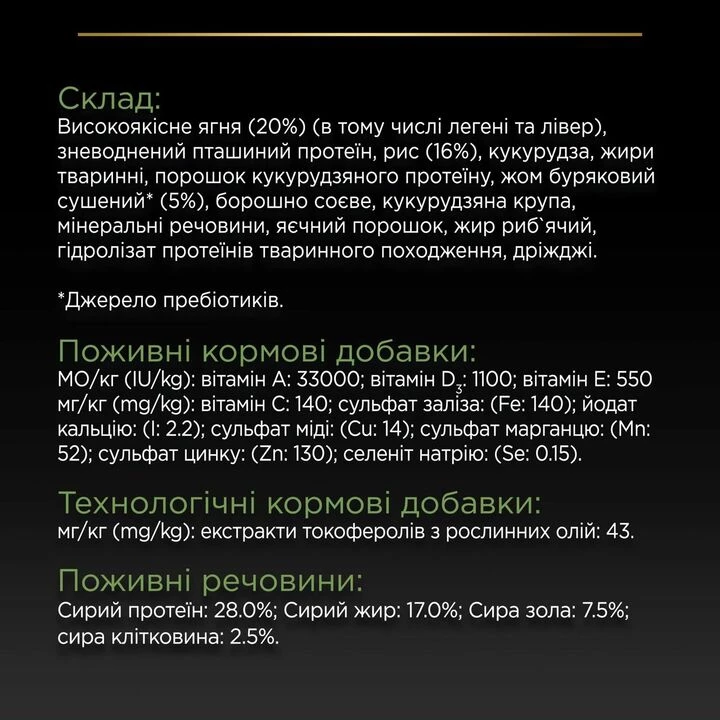 Інші особливості корму Pro Plan Small&Mini Adult Sensitive Digestion Lamb для дорослих тварин: