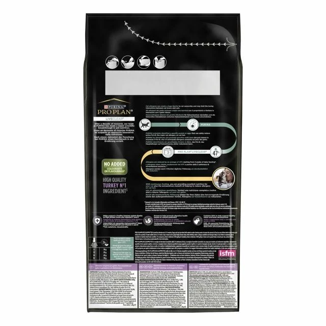 Ексклюзивний компонент формули Проплан Лів Клір Кіттен для кошенят з індичкою - яєчні IgY-антитіла, які зменшують синтез котячого алергену Fel d1. Він є причиною небажаних реакцій у 60-90% людей з алергією на кішок, тому сухий раціон вважається однією з основних ланок профілактики неприємних симптомів у господарів тварини. Концентрація антигену Fel d1 на поверхні шерсті зменшується на 47% за 3 тижні використання крокет згідно таблиці годування.