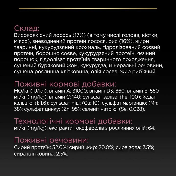 Високоякісний лосось (17%) (в тому числі голова, кістки, м'ясо)